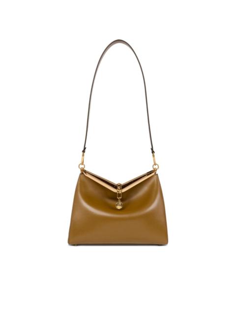 large Vela leather shoulder bag Highlights - Burgundy - Leather - Single detachable top handle - Main compartment - Gold-tone hardware Made in Italy Composition Lining: CALFSKIN 100% Outer: CALFSKIN 100% SIZE & FIT Measurement DEPTH 5.11 in(13 cm) HANDLE 10.62 in(27 cm) HEIGHT 9.84 in(25 cm) STRAP 19.68 in(50 cm) WIDTH 12.99 in(33 cm)