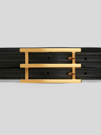 Leather belt with ETRO buckle from the Women's Fall-Winter 2023 Fashion Show collection. PRODUCT DETAILS • 100% calfskin • Interior: 100% calfskin • Golden-finish metal accessories • Made in Italy