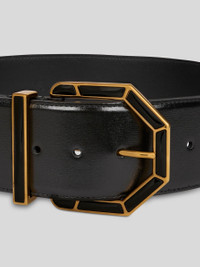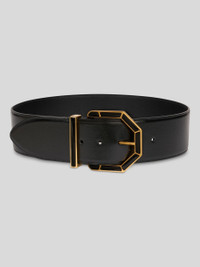 Solid-colour leather maxi-belt. This accessory features a tonal prong buckle with a golden finish. • Width: 2.4 inches (6 cm) • Made in Italy PRODUCT DETAILS • Exterior: calfskin • Interior: calfskin