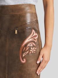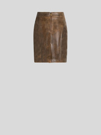 Pencil skirt in soft leather with worn effect. This model features two decorative floral-style inlays. • Regular fit • High waist • Zipped pockets • Rear zip closure • Made in Italy • The model is 5' 9½" (177 cm) tall and wears a size 40 PRODUCT DETAILS • 100% calfskin • Lining: 57% viscose, 43% polyester