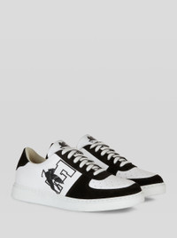 Leather sneakers with suede details and colour block pattern embellished with E lettering and Pegaso. PRODUCT DETAILS • Upper: 100% calfskin • Lining: 100% polyester • Insole: 100% calfskin • Sole: 100% rubber • Made in Italy