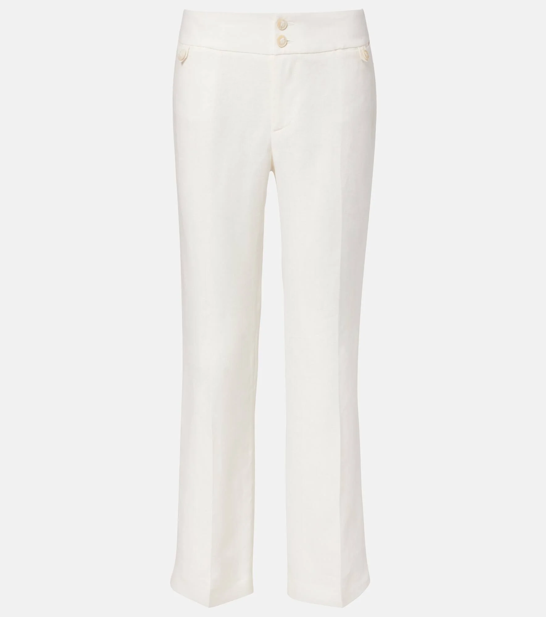 Etro's brand DNA manifests Italian glamour through revelry in color, fabric, and an approach to elegance that's entirely its own. These bootcut pants are in made in Italy from a wool blend. Product Details - Material: 100% linen - Care instructions: do not dry clean - Made in Italy - Designer color name: W0001 - Item color: white - Closure: zipper fly, button fastening - Item number: P01121464 Size & Fit - True to size - Non-stretchy fabric - Straight leg - The model seen in the picture is 178cm-5'10" and wearing a size IT 40