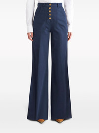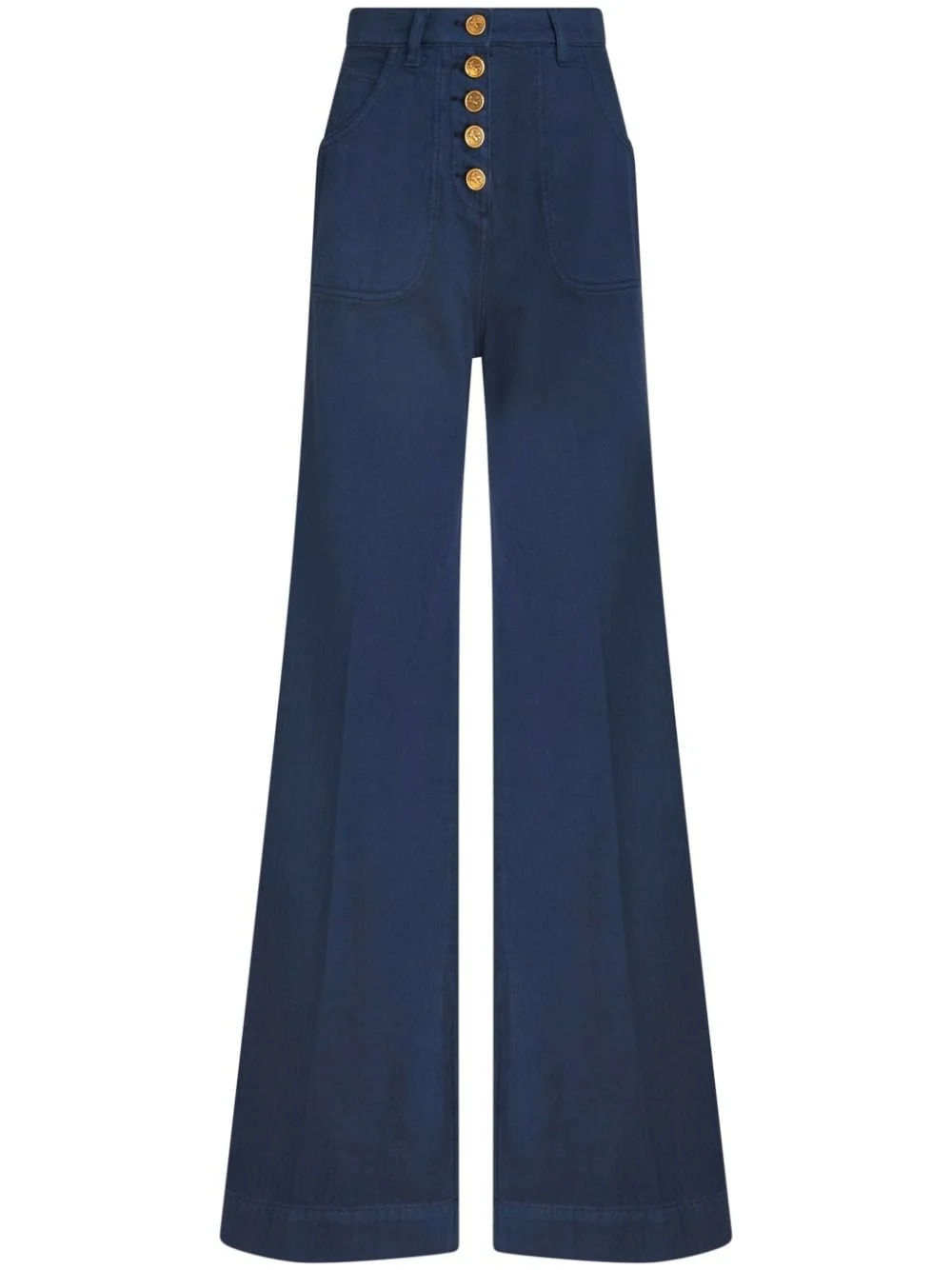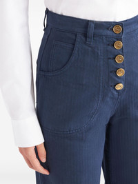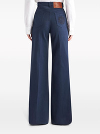 logo-embossed button high-rise flared jeans Highlights - Indigo blue - Cotton - Houndstooth pattern - Logo patch to the rear - Embroidered logo to the rear - Signature pegaso motif - Logo-embossed buttons - High-waisted - Belt loops - Flared - Button fly fastening - Classic five pockets Made in Italy Composition Cotton 100% SIZE & FIT FittingInformation Designed with a flared hem, these jeans allow for a close fit at the waist with a slim fit over the leg and widening towards the hem Sturdy and hard-wearing, this denim piece offers no stretch This piece fits true to size – take your usual size Measurement INSIDE LEG 37 in(94 cm) Hem Width 27 in(68.6 cm) FRONT RISE 12 in(30.5 cm) WAIST 25.98 in(66 cm) BACK RISE 14.01 in(35.6 cm) HIPS 37.99 in(96.5 cm) Washing instructions Read Manufacturer Guidelines