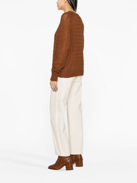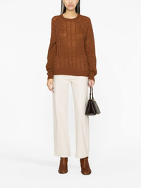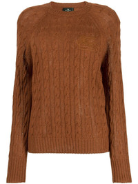 logo-embroidered cable-knit jumper Highlights - Caramel brown - Cashmere - Embroidered logo at the chest - Signature pegaso motif - Cable knit - Ribbed trim - Crew neck - Long sleeves - Straight hem Made in Italy Composition Cashmere 100% SIZE & FIT Model measurements Height 5 ft 10 in(1.77 m) Bust/Chest 32.67 in(83 cm) Hips 35.43 in(90 cm) Waist 23.62 in(60 cm) FittingInformation Designed to be unstructured, offering a loose fit throughout Made with a lightweight knit, this piece offers some stretch This piece fits true to size – take your usual size