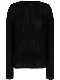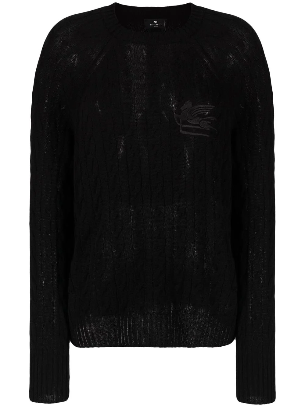 logo-embroidered cable-knit jumper Renowned for its luxurious fabrics, ETRO introduces this cashmere jumper. Crafted with a classic cable knit, its soft silhouette is rendered in black and decorated with tonal logo embroidery at the chest. Highlights - Black - Cashmere - Cable knit - Crew neck - Embroidered logo at the chest - Long sleeves - Straight hem - Ribbed cuffs and hem Made in Italy Composition Cashmere 100% SIZE & FIT Model measurements Height 5 ft 10 in(1.78 m) Bust/Chest 30.7 in(78 cm) Hips 34.64 in(88 cm) Waist 23.22 in(59 cm) FittingInformation Designed for a relaxed fit, this piece allows for comfort and movement when worn Made with a lightweight knit, this piece offers some stretch This piece fits true to size – take your usual size