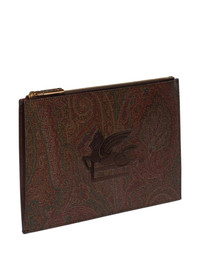 logo embroidered clutch bag Highlights - Brown/multicolour - Cotton blend - Top zip fastening - Square shape - Textured finish Made in Italy Composition Outer: Cotton 76%, Polyester 24% SIZE & FIT Measurement DEPTH 0.39 in(1 cm) HEIGHT 6.49 in(16.5 cm) WIDTH 9.64 in(24.5 cm)