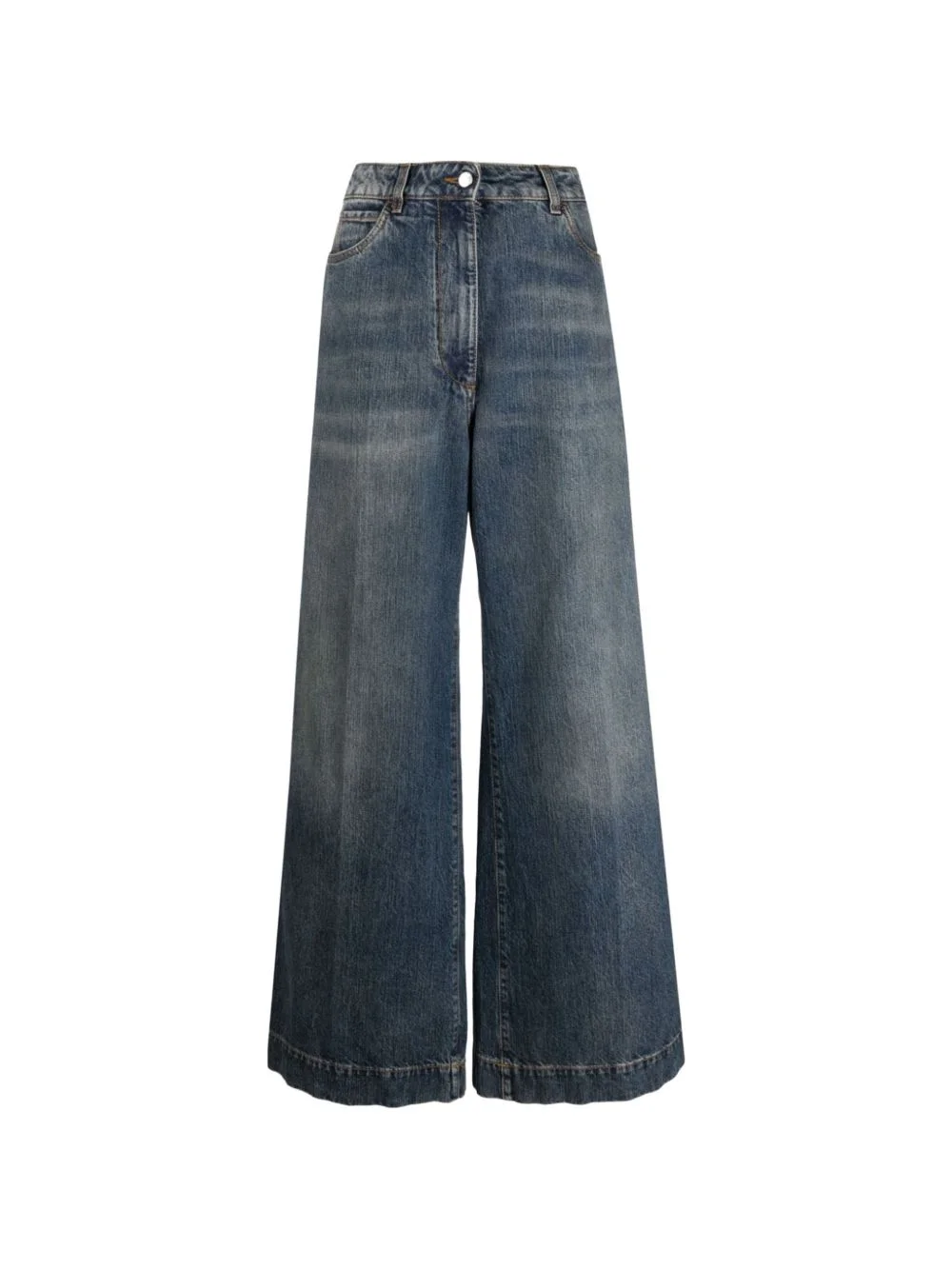 logo-embroidered jeans Highlights - Blue - Logo embroidery - Wide leg - Five pockets - Belt loops Imported Composition Denim 100% Washing instructions Machine Wash