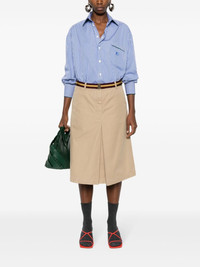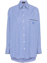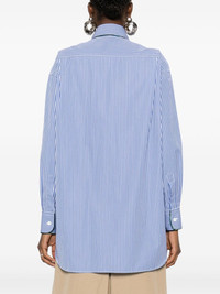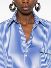 logo-embroidered striped cotton shirt Highlights - Blue/white - Cotton - Poplin texture - Vertical stripe pattern - Embroidered logo at the chest - Chest patch pocket - Classic collar - Long sleeves - Buttoned cuffs - Curved hem - High-low hem - Front button fastening Made in Italy Composition Cotton 100%, Nylon 66%, Polyester 34% SIZE & FIT Model measurements Height 5 ft 10 in(1.78 m) Bust/Chest 31.49 in(80 cm) Hips 37 in(94 cm) Waist 23.62 in(60 cm) FittingInformation Designed to be unstructured, offering a loose fit throughout Made from a midweight non-stretch fabric This piece fits true to size – take your usual size