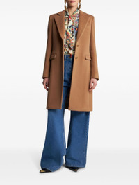 brown wool-cashmere blend logo-engraved buttons peak lapels button fastening buttoned-cuff sleeves front welt pocket two front flap pockets American rear vent Size & Fit Model Measurements: Bust: 0cm Height: 0cm Hips: 0cm Waist: 0cm Fabric and Care Designer Style ID: WRAA003399TU2G6 Designer Colour: M1826 Composition: Outer: Cashmere 20%, Wool 80%; Lining: Viscose 52%, Acetate 48% Washing instructions: Read Manufacturer Guidelines Made in Italy
