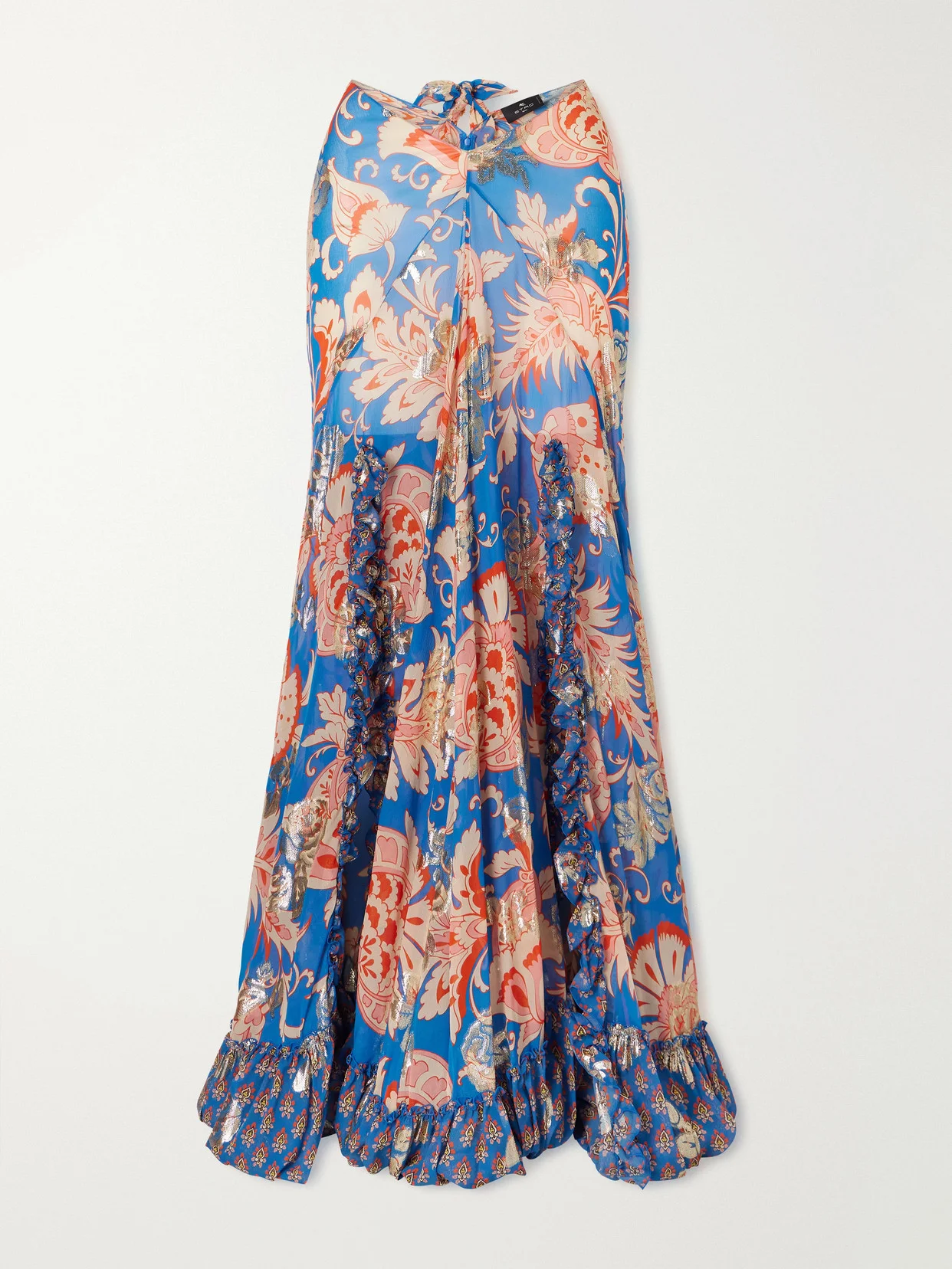 For Spring '26, Etro reimagined its signature bold motifs to the sound of La Nina's underground, bohemian folk influences. Made from silk threaded with metallic fibers, this skirt has a high slit and a ruffled hem that sways beautifully with each step. Take cues from the runway and pair it with an embellished top to highlight the shimmering prints.