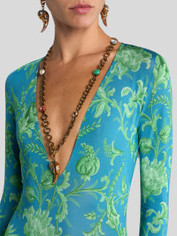 LONG STRETCH JERSEY DRESS WITH FLORAL MOTIF