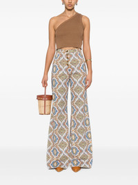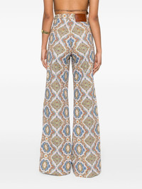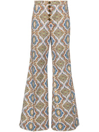 mandala-print flared jeans Everything about these ETRO jeans evokes a nostalgia for ‘70s bohemia, from the colourful mandala print to the flared silhouette. They sit high on the waist and fasten with a row of Pegaso buttons – the signature emblem first appeared in 1968 as ‘a heraldic 'coat-of-arms.’ Highlights - Light purple/multicolour - Stretch-cotton - Denim - All-over mandala print - Signature pegaso buttons - Front button fastening - High-rise - Belt loops - Classic five pockets - Logo patch to the rear - Flared Made in Italy Composition Cotton 97%, Elastane 3% SIZE & FIT Model measurements Height 5 ft 10 in(1.77 m) Bust/Chest 31.88 in(81 cm) Hips 36.22 in(92 cm) Waist 24.01 in(61 cm) Measurement INSIDE LEG 35.43 in(90 cm) FRONT RISE 12.2 in(31 cm) WAIST 27.55 in(70 cm) HIPS 33.07 in(84 cm) FittingInformation Designed with a flared hem, these jeans allow for a close fit at the waist with a slim fit over the leg and widening towards the hem Constructed from stretch denim, this piece offers a stretch fit with durability This piece fits true to size – take your usual size Washing instructions Machine Wash