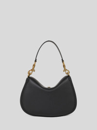 Soft-structured Pony bag in plain-coloured leather with suede interior. This item features two closures: the main one with a magnetic button embellished with ETRO logo and Pegaso symbol, engraved using the same technique used to mint coins; and a second with a functional metal buckle. This model includes an interchangeable handle and shoulder strap with Paisley-patterned detail at the clasps. • Dimensions (Width, Height, Depth): 11.4 x 7.9 x 3.9 inches (29 x 20 x 10 cm) • Magnetic and buckle closures • Internal slip pocket • Interchangeable handle and shoulder strap • Golden-finish metal accessories • Made in Italy PRODUCT DETAILS • Exterior: calfskin • Lining: cowhide