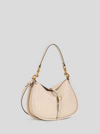 Soft-structured medium Pony bag in plain-coloured tumbled leather with suede interior. This item features two closures: the main one with a magnetic button embellished with ETRO logo and Pegaso symbol, engraved using the same technique used to mint coins; and a second with a functional metal buckle. This model, presented at the Autumn-Winter 25 Runway Show, includes an interchangeable handle and shoulder strap with Paisley-patterned detail at the clasps. • Dimensions (Width, Height, Depth): 11.8 x 8.3 x 3.9 inches (30 x 21 x 10 cm) • Magnetic and buckle closures • Internal slip pocket • Interchangeable handle and shoulder strap • Golden-finish metal accessories • Made in Italy PRODUCT DETAILS • Exterior: calfskin • Lining: cowhide