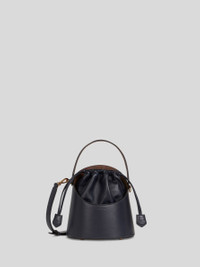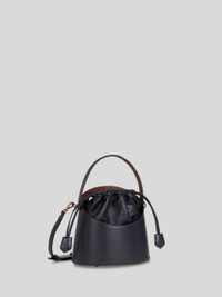 Medium Saturno bucket bag in leather, with iconic Paisley jacquard fabric details. This bag stands out thanks to its oval handle and sack-like inner body with drawstring. The Saturno bag is perfect to carry by the handle or shoulder strap. Features striped inner lining. • Size: 9.05 x 6.10 x 8.58 inches (23 x 15,5 x 21,8 cm) • Drawstring closure • Short handle • Adjustable and detachable shoulder strap • Metal feet • Made in Italy PRODUCT DETAILS • Body: 100% leather • Detail 1: Paisley jacquard cotton fabric coated with matt texture and lined with canvas • Coating: 100% PVC • Lining: 100% polyester