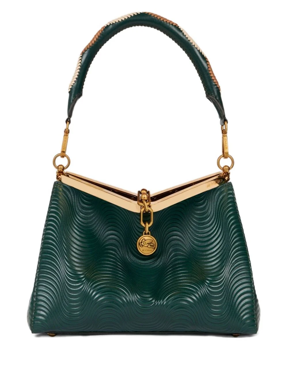 medium Vela shoulder bag Highlights - Dark green - Clasp fastening - Single detachable top handle - Detachable shoulder strap - Removable pouch Made in Italy Composition Outer: CALFSKIN 100% Lining: CALFSKIN 100% SIZE & FIT Measurement DEPTH 4.33 in(11 cm) HEIGHT 8.46 in(21.5 cm) WIDTH 11.02 in(28 cm)