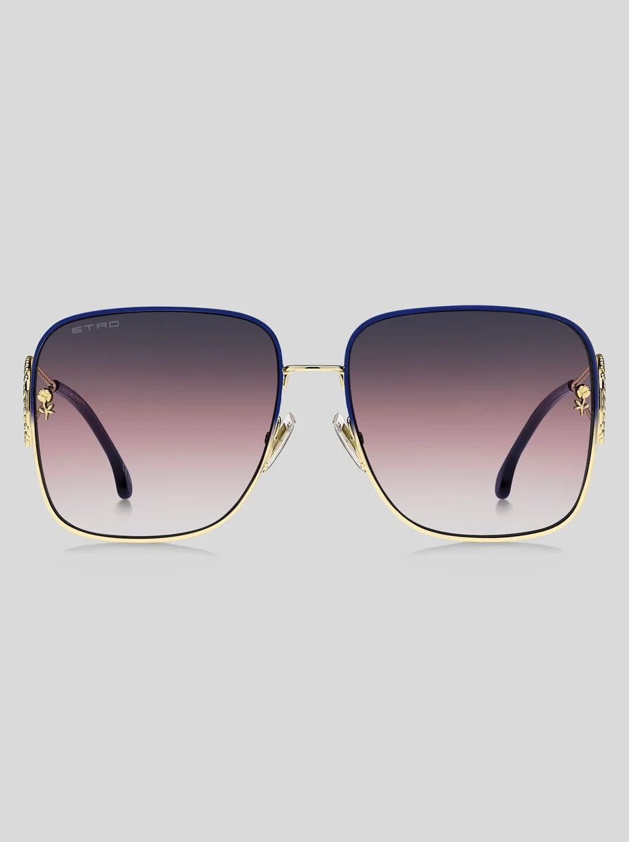 An ode to creative freedom and artistic experimentation, these sunglasses draw inspiration from ETRO's jewellery collection. The sleek metal silhouette sees an innovative chiselling technique applied to the sculptural temples to create an enhanced three-dimensional effect. The shape of the temples recalls the brand's signature Paisley motif, beautifully rounded and extremely lightweight for everyday comfort. ETRO's intricate floral detail and glistening logo complete this exceptional design, as fashionable as it is functional. PRODUCT DETAILS • Frame: metal • Lenses with UVA and UVB protection • Fitting: international • Lens: 56,8mm, bridge: 16mm, temple: 145mm • Made In Italy