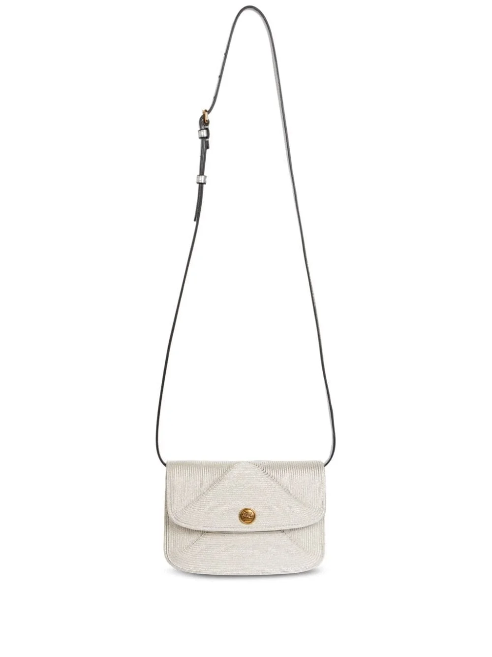 metallic-effect cross body bag Highlights - Silver-tone - Calf leather - Metallic effect - Fine ribbed - Foldover top with magnetic fastening - Adjustable detachable shoulder strap - Signature pegaso plaque - Suede lining - Partitioned compartment Made in Italy Composition Lining: Calf Suede 100% Outer: Fabric 100%, Calf Leather 100%