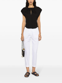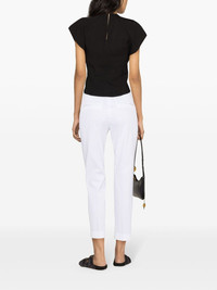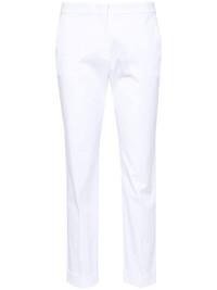 stretch-cotton cropped trousers Highlights - White - Cotton blend - Slim cut - Mid-rise - Concealed front button, hook and zip fastening - Two diagonal pockets to the sides - Two rear welt pockets - Pressed crease - Turn-up hem - Cropped leg Made in Italy Composition Cotton 97%, Elastane 3% SIZE & FIT Model measurements Height 5 ft 10 in(1.78 m) Bust/Chest 31.49 in(80 cm) Hips 35.03 in(89 cm) Waist 23.62 in(60 cm) Measurement INSIDE LEG 25.19 in(64 cm) FRONT RISE 7.87 in(20 cm) WAIST 27.55 in(70 cm) HIPS 34.64 in(88 cm) FittingInformation Designed with a cigarette cut, these trousers allow for a close fit at the waist and offer an unrestricted fit through to the ankle Cropped in length Made from a midweight stretch fabric, this piece offers elasticity and flexibility when worn This piece fits true to size – take your usual size