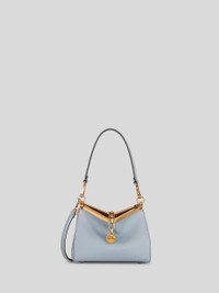 Mini Vela bag in leather with metal chain closure enhanced by a medallion bearing the ETRO logo and Pegaso symbol. This bag is perfect to carry on the shoulder or crossbody. • Dimensions (Width, Height, Depth): 8.3 x 6.3 x 3.5 inches (21 x 16 x 9 cm) • Short shoulder strap, length (drop) 10.6 inches (27 cm) • Detachable adjustable shoulder strap, 21.7 inches (55 cm) long (drop) • Metal feet • Light golden-finish metal accessories • Made in Italy PRODUCT DETAILS • Exterior: 100% calfskin • Interior: 100% cowhide
