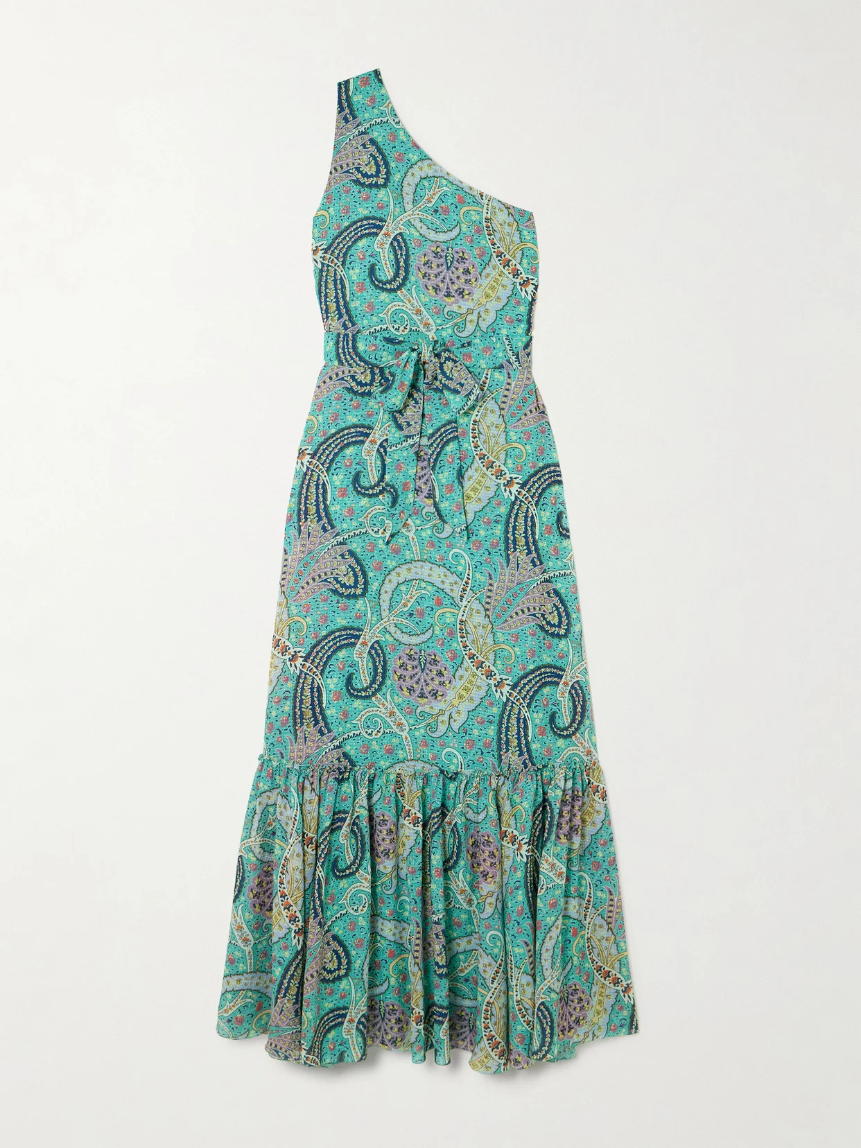 EXCLUSIVE AT NET-A-PORTER. Our capsule with Etro celebrates the house's bohemian roots. Made from lightweight satin-jacquard, this one-shoulder dress is printed with the house's iconic paisleys in a vacation-worthy palette. The tiered hem moves beautifully as you walk.