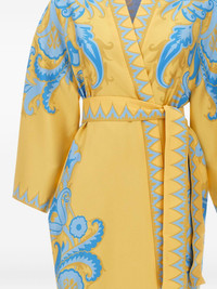 ornate-print belted robe dress Highlights - Yellow - Intricate blue pattern - Wrap design - Long sleeves - Detachable belt Made in Italy Composition Silk 100%