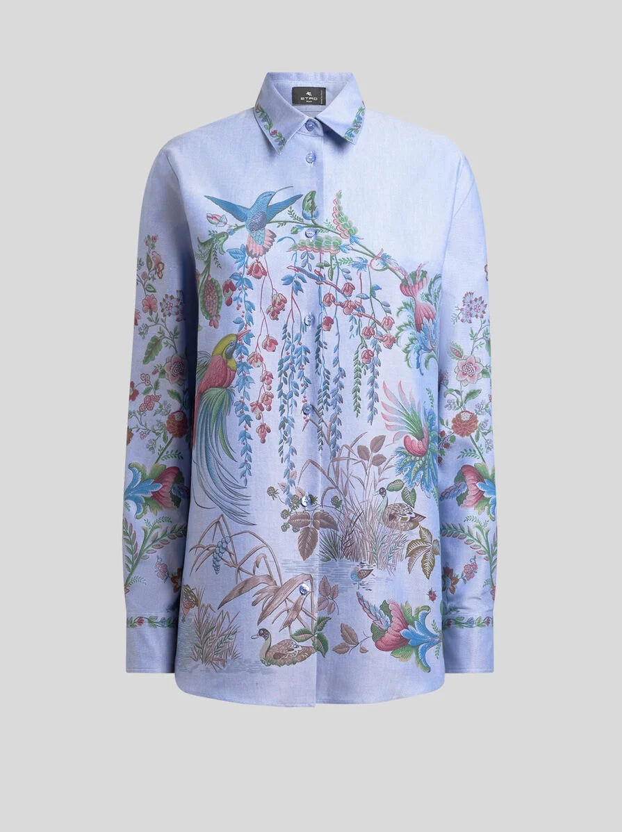 OXFORD COTTON SHIRT WITH PLACED FLORA AND FAUNA PRINT