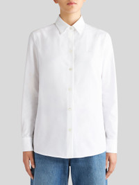 This menswear-inspired shirt boasts a relaxed, straight-cut fit. This model is made from Oxford cotton and features a tone-on-tone embroidered Pegaso symbol and ETRO logo on the chest. PRODUCT DETAILS • 100% cotton • Boyfriend fit • Classic collar • Long sleeves • Working cuffs • Button closure • Made in Italy • The model is 178 cm/ 70.07 inches tall and wears a size 40 (IT)