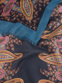 Wool-, cashmere- and silk-blend scarf with placed, floral Paisley print. Completing the accessory are the slightly frayed short sides and an ETRO logo in the corner. • Size: 17.7 x 55.1 inches (45 x 140 cm) • Made in Italy PRODUCT DETAILS • 40% wool, 30% cashmere, 30% silk