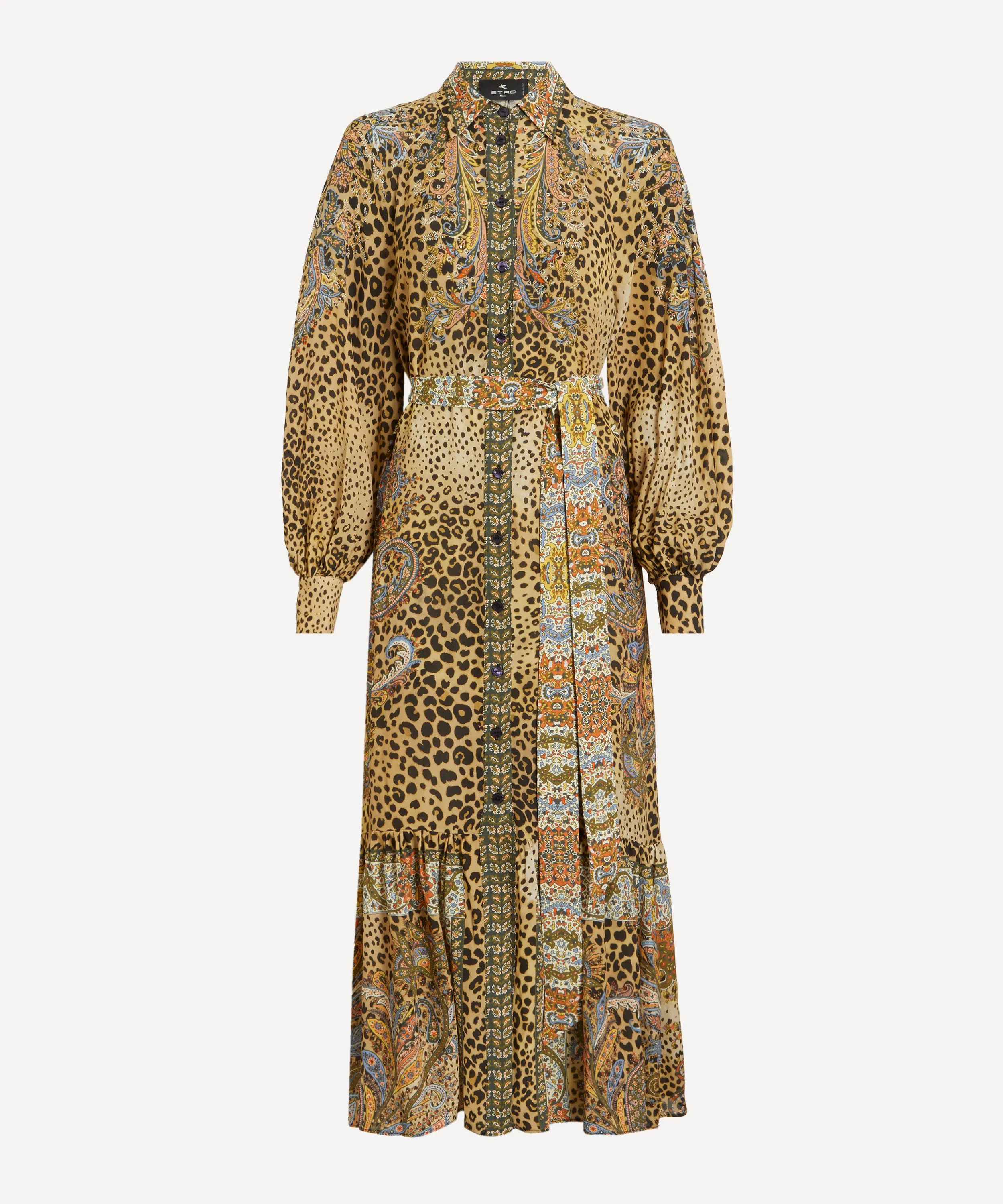 DETAILS Crepe shirt dress Leopard paisley print Midi length Regular fit Long puff sleeves Buttoned cuffs Collared neckline Buttoned placket Self-tie belt Made in Italy SIZE & FIT Model is 177.5cm/5'10"; Chest: 78cm; Waist: 58cm; Hip: 86cm and wears a size 40 COMPOSITION & CARE 100% Viscose Dry clean