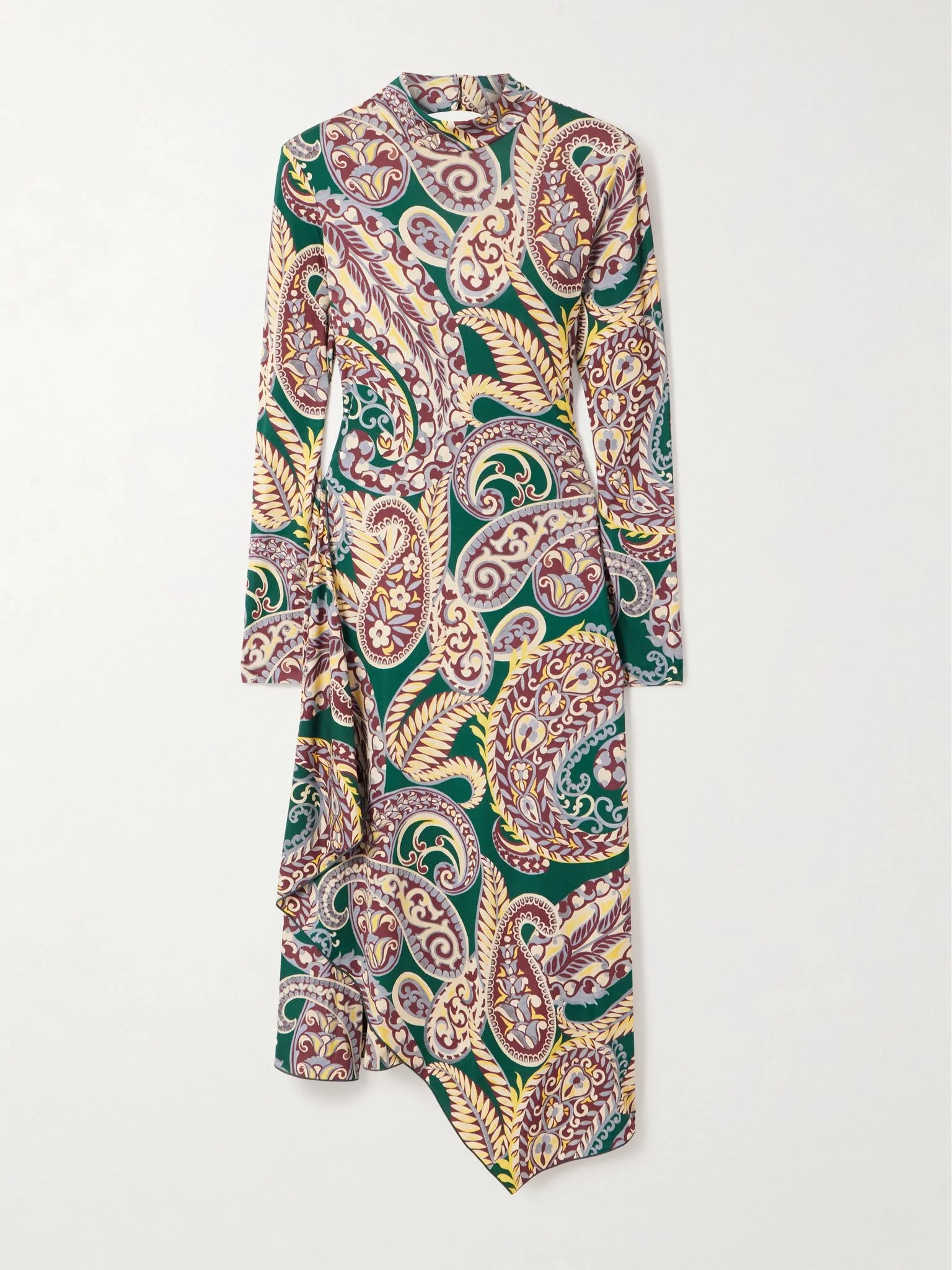 Asymmetric open-back paisley-print stretch-jersey dress Multi