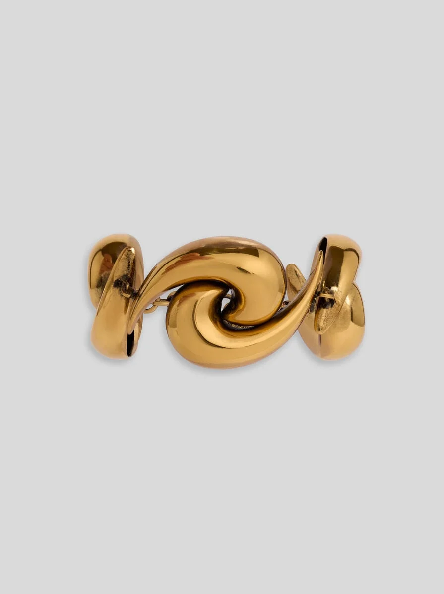 Vintage-finish brass bracelet with maxi elements in the shape of the iconic Paisley. Presented at the Spring/Summer 26 Runway Show, this accessory is complete with engraved ETRO logo lettering. • Total length: 8.7 inches (22 cm) • Width: 1.4 inches (3.5 cm) • Clasp closure • Made in Italy PRODUCT DETAILS • 100% brass