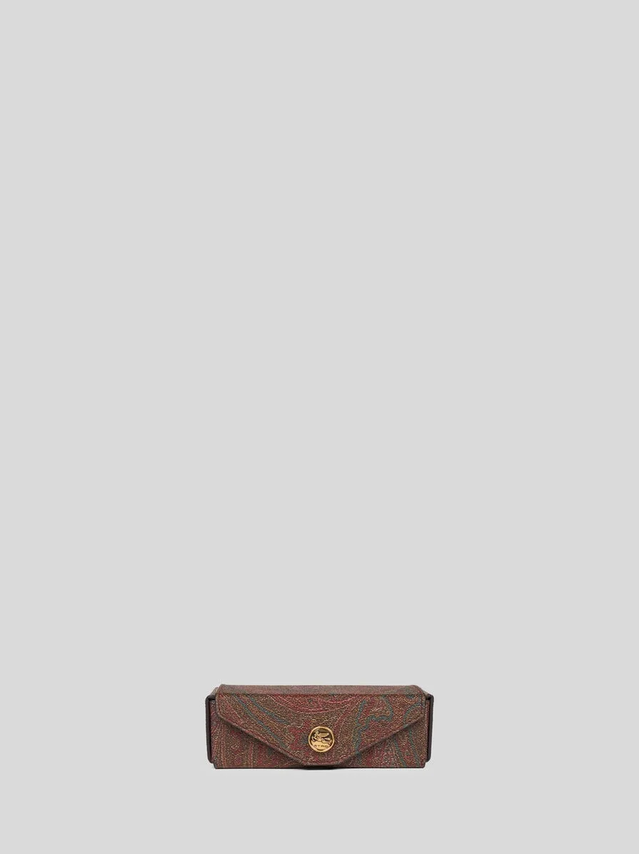 Domino game featuring the iconic Paisley jacquard fabric and complete with an elegant flap and button-fastened box embellished with an embossed Pegaso logo and engraved Etro lettering. • Dimensions (Width, Height, Depth): 5.5 x 2 x 2.6 inches (14 x 5 x 6,5 cm) • Domino tiles and case • Fastened with flap and button • Golden button with Pegaso logo • Made in Italy PRODUCT DETAILS • Exterior: Paisley jacquard cotton fabric coated with matt texture and lined with canvas • Coating: 100% PVC • Trims: lambskin, polyester, cotton • Lining: lambskin with PVC coating