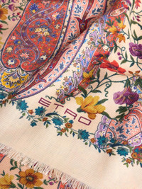 Wool and silk scarf with floral Paisley print. The iconic ETRO logo in the corner completes the accessory. • Size: 27.6 x 66.9 inches (70 x 170 cm) • Made in Italy PRODUCT DETAILS • 70% wool, 30% silk