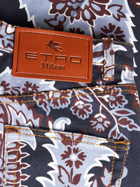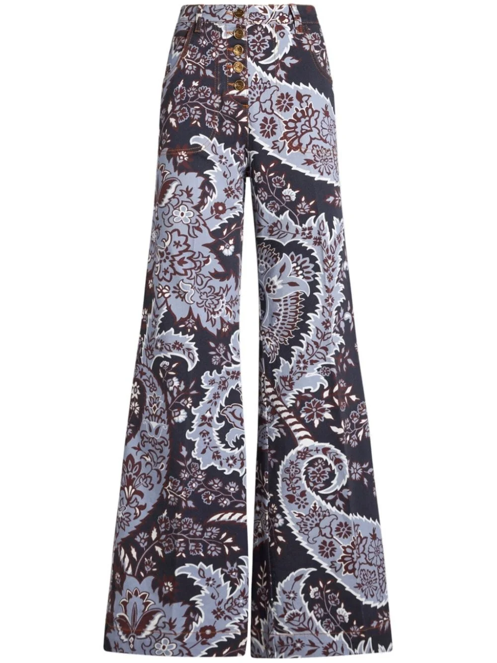 paisley-print flared jeans Highlights - Multicolour - Paisley print - Contrast stitching - Belt loops - Logo patch to the rear - Front button fastening - Mid-rise - Flared design - Classic five pockets Made in Italy Composition Cotton 97%, Elastane 3%