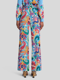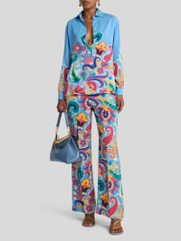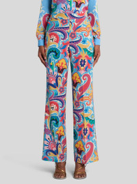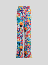 Palazzo trousers in pure silk fabric with pressed creases and multicoloured floral print all over. • Waistband elasticated at the back • Side zip closure • Pressed creases • Made in Italy • The model is 5' 9½" (177 cm) tall and wears a size 40 PRODUCT DETAILS • 100% silk