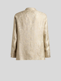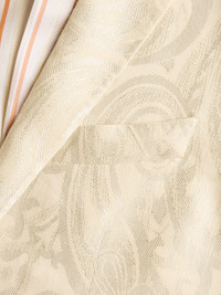 Single-breasted linen-blend blazer with iconic, tonal Paisley jacquard motif all over. Inner lining embellished with printed vertical stripes of varying width. • Roma regular fit • Single-breasted two-button closure • Front pockets with flap • Made in Italy • The model is 6' 1½" (187 cm) tall and wears a size 48 PRODUCT DETAILS • 52% linen, 48% viscose • Lining: 52% viscose, 48% acetate