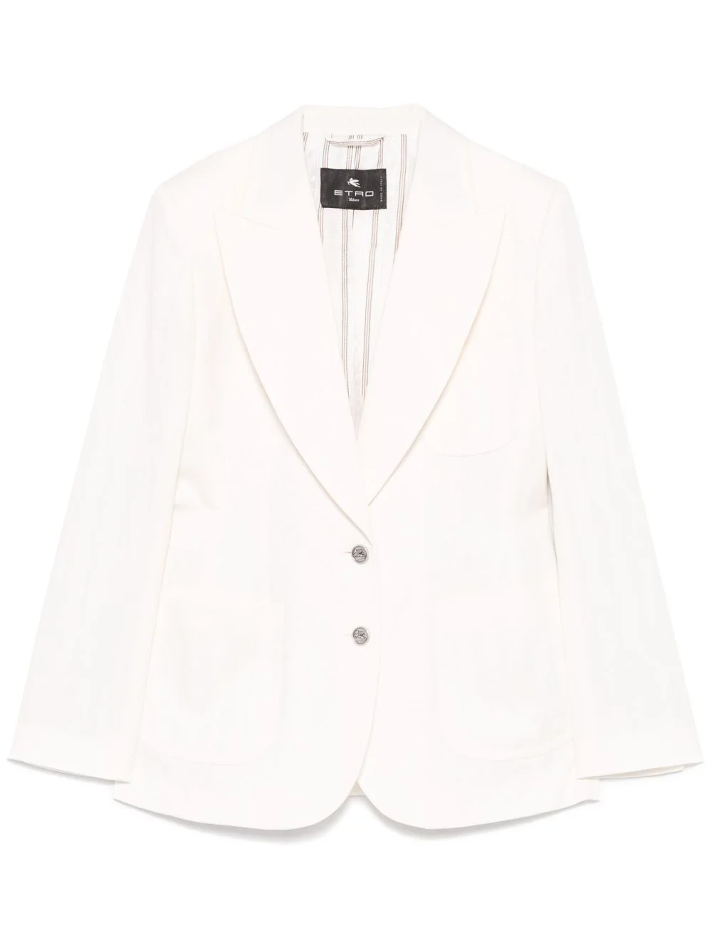 paisley-jacquard blazer Highlights - Light beige - Front button fastening - Buttoned cuffs - Shoulder pads - Two front patch pockets Made in Italy Composition Cotton 100% SIZE & FIT Model measurements Height 5 ft 11 in(1.8 m) Bust/Chest 31.49 in(80 cm) Hips 36.61 in(93 cm) Waist 24.4 in(62 cm) FittingInformation Designed for a slim fit that sits just away from the body offering a close yet comfortable fit The internal shoulder pads offer a structured shape Made from a midweight fabric