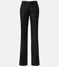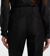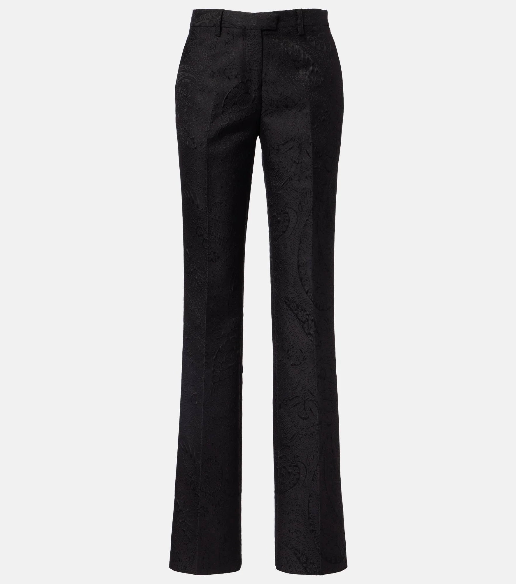 Paisley prints are so synonymous with Etro that they've become a house signature. These pants are crafted from a jacquard fabric with the iconic pattern and tailored to a bootcut silhouette with refined front creases. Product Details - Material: 37% viscose, 32% polyester, 30% cotton, 1% elastane - Care instructions: dry clean - Made in Italy - Designer color name: Black - Item color: black - Belt loops - Pockets: slant pockets, back pockets - Closure: zipper fly, button and hook fastenings - Item number: P01092281 Size & Fit - True to size - Non-stretchy fabric - Straight leg - Sits low on the hips - Unhemmed for tailoring - The model seen in the picture is 178cm-5'10" and wearing a size IT 40