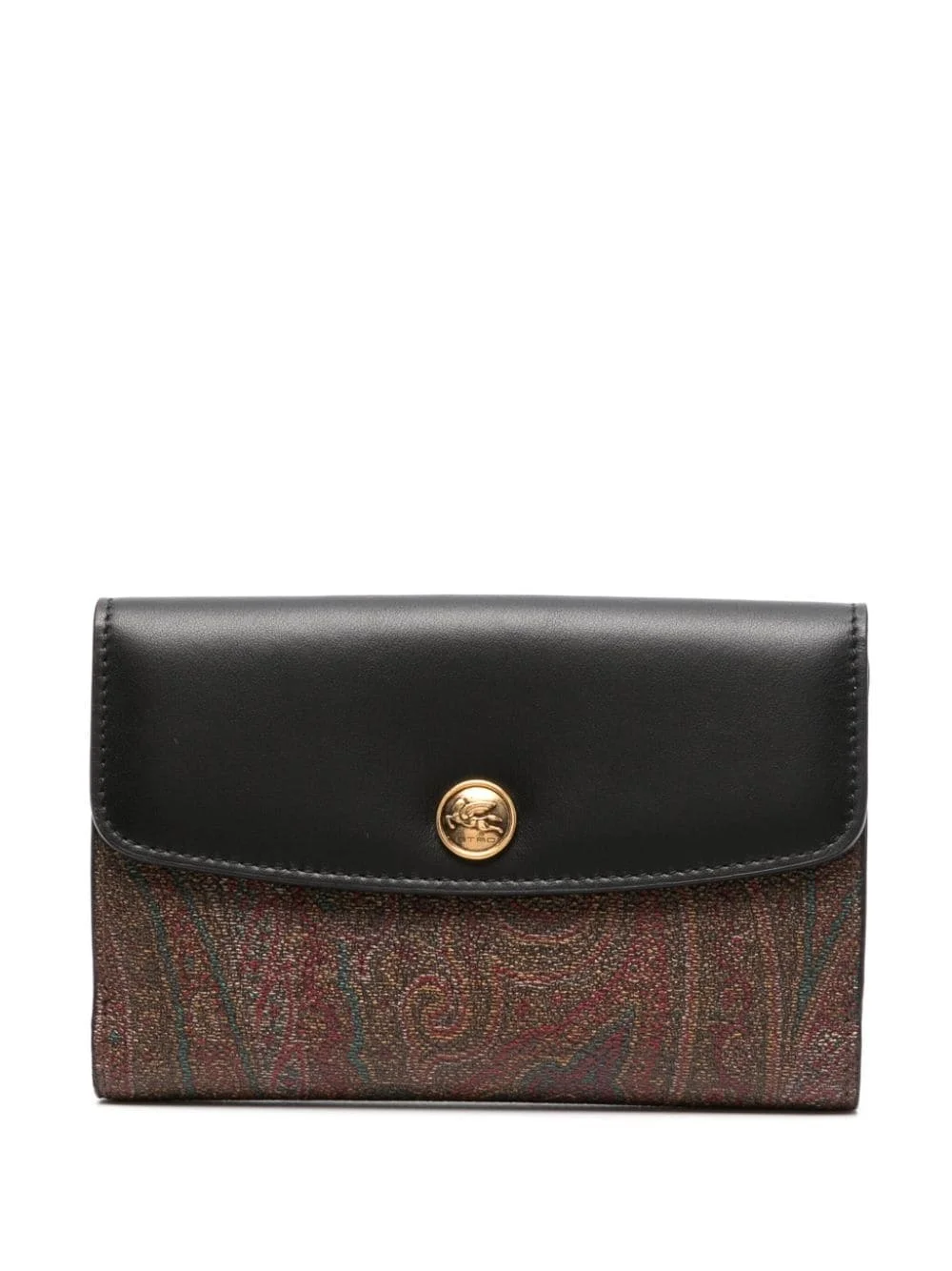 Essential paisley-print leather wallet Highlights - Black/multicolour - Calf leather - Folded design - Paisley print - Signature pegaso motif - Gold-tone logo plaque - Front button fastening - Internal card slots - Note compartment - Slip pocket to the rear Made in Italy Composition Outer: Calf Leather 100% SIZE & FIT Measurement DEPTH 0.39 in(1 cm) HEIGHT 3.14 in(8 cm) WIDTH 5.9 in(15 cm)