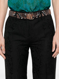 paisley-jacquard trousers Highlights - Black - Concealed front button, hook and zip fastening - Two side slash pockets - Two rear button-fastening jetted pockets - Belt loops Made in Italy Composition Cotton 53%, Wool 47% SIZE & FIT Model measurements Height 5 ft 10 in(1.78 m) Bust/Chest 33.46 in(85 cm) Hips 36.22 in(92 cm) Waist 23.22 in(59 cm) FittingInformation Designed for a straight-leg fit, these trousers allow for a close fit at the waist and an unrestricted, comfortable fit over the leg The unfinished hems allow for the length to be altered Made from a midweight non-stretch fabric