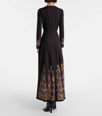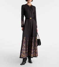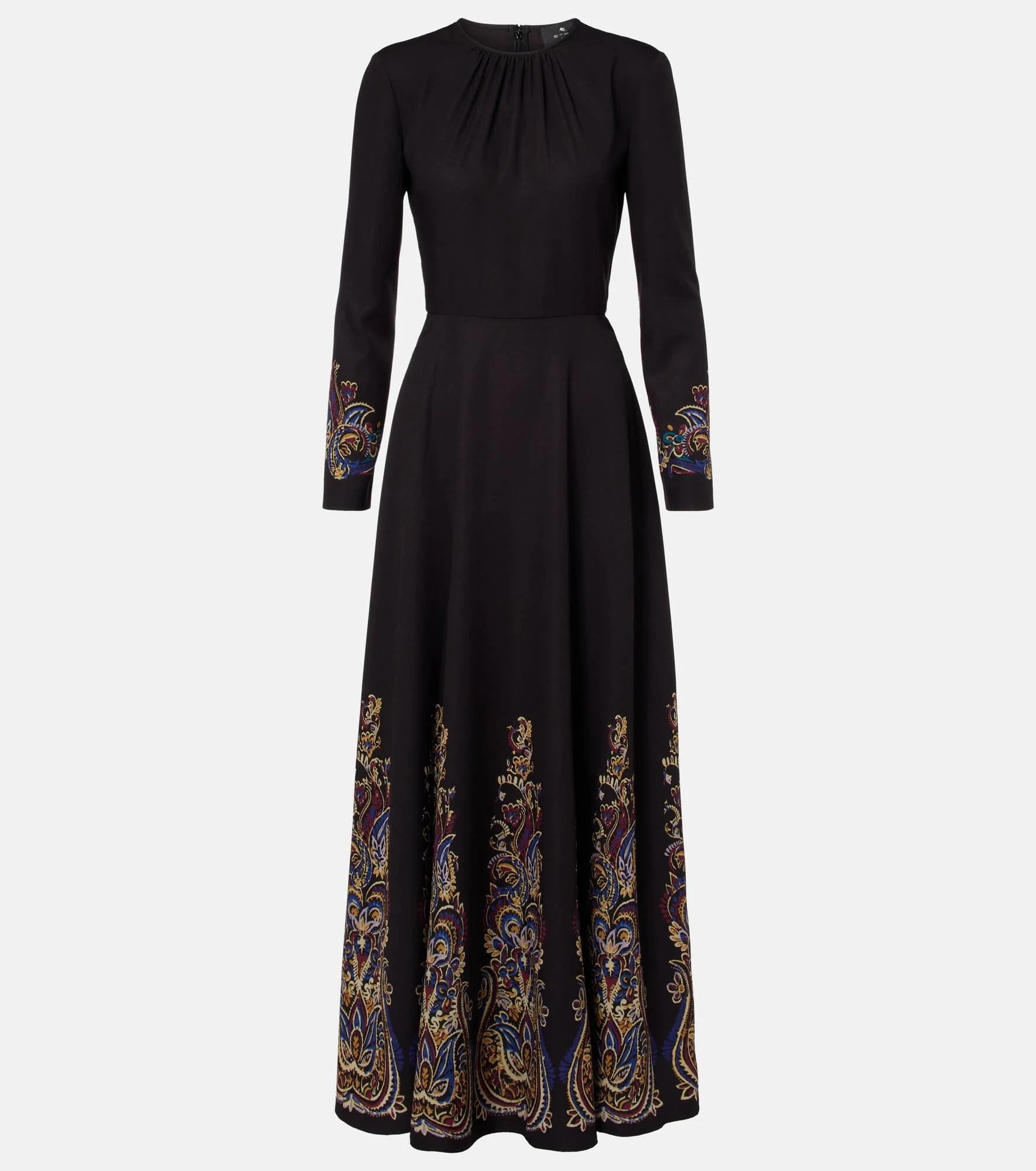 Paisley prints are so synonymous with Etro that they've become a house signature. The iconic pattern is showcased on the flared skirt of this maxi dress, designed with long sleeves and a cinched waist. Product Details - Material: 92% polyester, 8% elastane - Care instructions: dry clean - Made in Italy - Designer color name: Multicolor Black Base - Item color: black, multicolor - Closure: concealed zipped back - Item number: P01092300 Size & Fit - True to size - Cinched waist - Non-stretchy fabric - The model seen in the picture is 178cm-5'10" and wearing a size IT 40