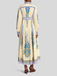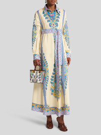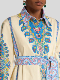Long cotton poplin shirt dress with decorative, placed medallion and Paisley motif. This model is complete with a belt sporting a contrasting geometric pattern. • Loose fit • Shirt collar • Long sleeves • Working cuffs with Pegaso buttons • Fastened with Pegaso buttons • Made in Italy • The model is 5' 9½" (177 cm) tall and wears a size 40 PRODUCT DETAILS • 97% cotton, 3% elastane