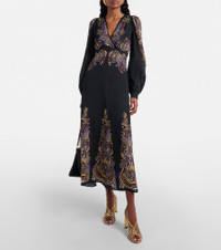 Paisley prints are so synonymous with Etro that they've become a house signature. This midi dress features the iconic motif and is finished with a V-neckline and long sleeves. Product Details - Material: 100% viscose - Care instructions: dry clean - Made in Italy - Color: black - Designer color name: Multicolor Black Base - Lace: 100% cotton - Lining: 100% polyester - Cuff: buttoned - Item number: P01092289 Size & Fit - True to size - Cinched waist - Non-stretchy fabric - The model seen in the picture is 178cm-5'10" and wearing a size IT 40