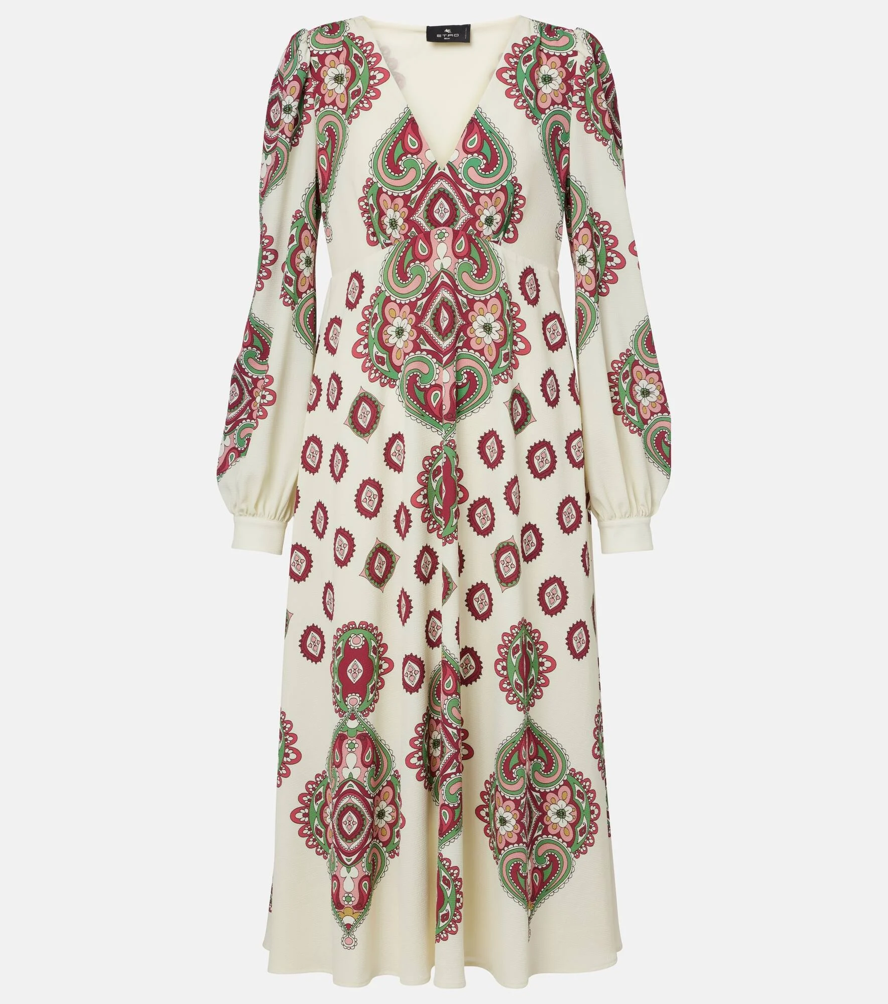 Paisley prints are so synonymous with Etro that they've become a house signature. The motif features on this midi dress, characterized by a fluid silhouette and a V-neckline. Product Details - Material: 100% polyester - Care instructions: dry clean - Made in Italy - Designer color name: Stampa F. Do Bianco - Item color: white, multicolor - Lining: 100% polyester - Fully lined - Collar: V-neck - Closure: zipped side - Item number: P01050776 Size & Fit - True to size - Cinched waist - Non-stretchy fabric - The model seen in the picture is 178cm-5'10" and wearing a size IT 40