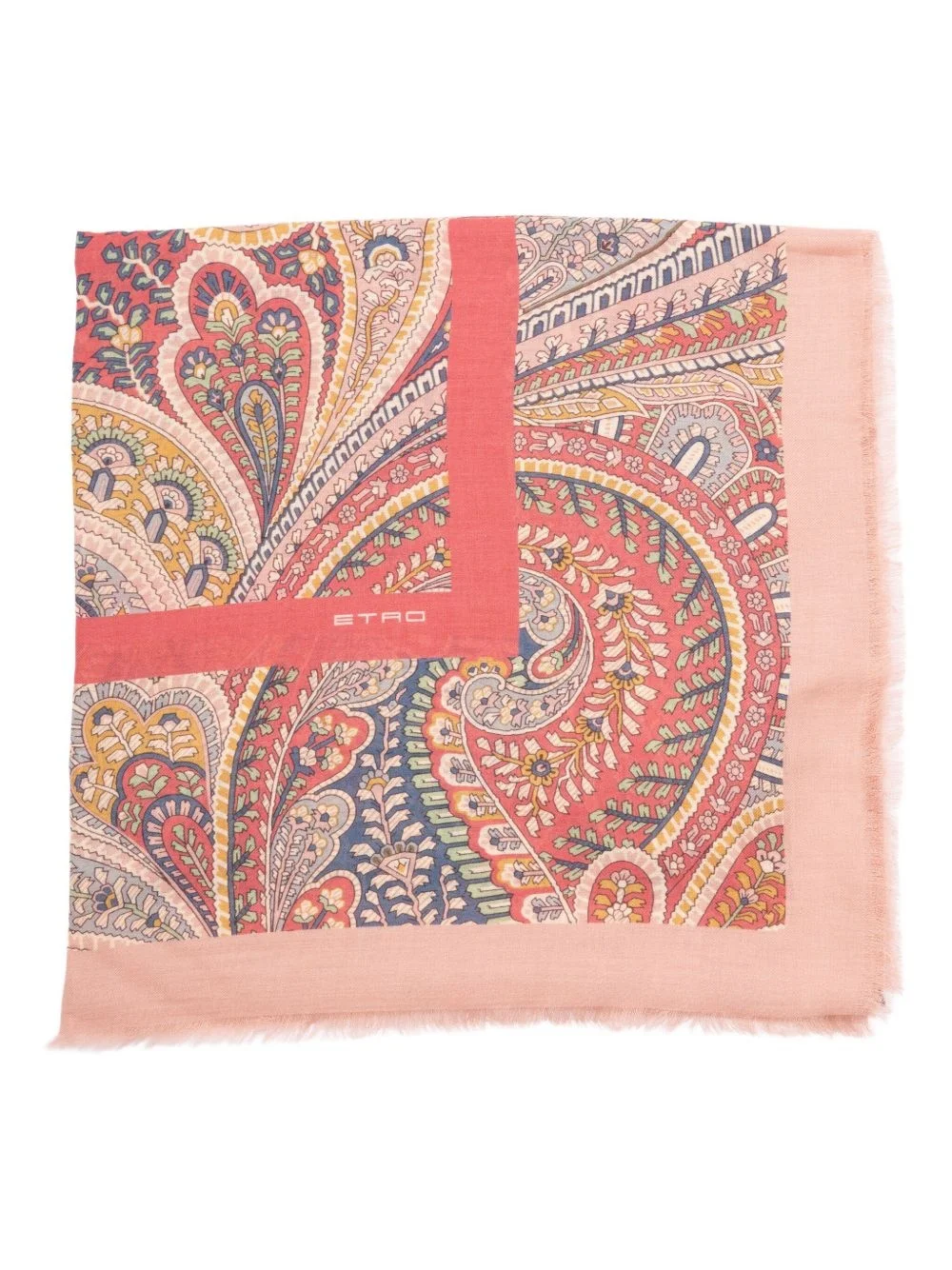 paisley-patterned scarf Highlights - Red - Paisley pattern - Contrasting border - Frayed edges Made in Italy Composition Modal 90%, Cashmere 10% SIZE & FIT Measurement LENGTH 55.11 in(140 cm) WIDTH 55.11 in(140 cm)