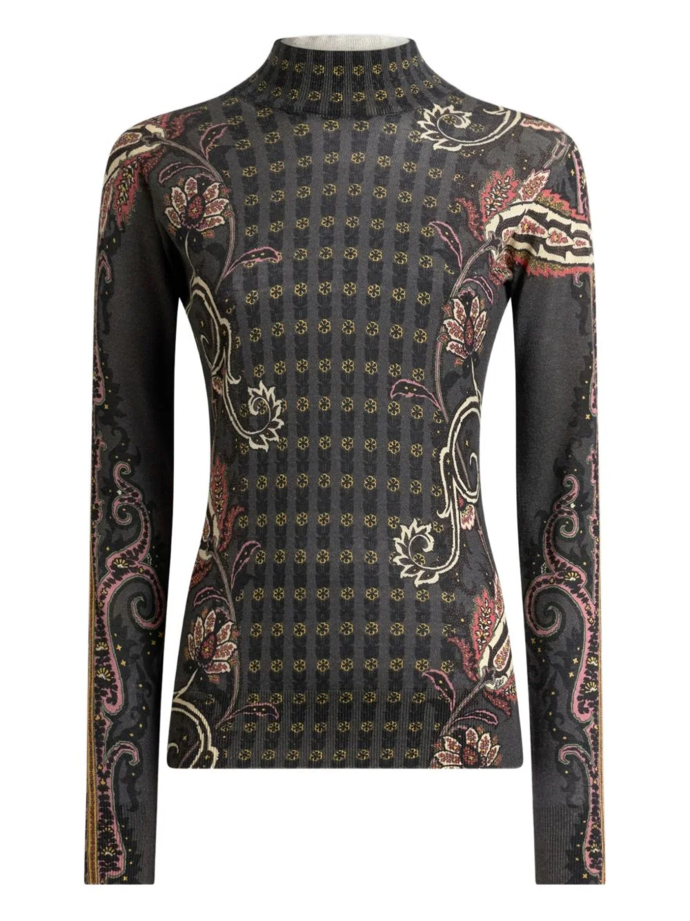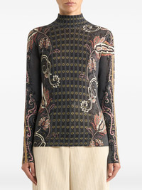 paisley-motif turtleneck top Highlights - Black - Paisley motif - Turtleneck - Long sleeves - Striped pattern - Ribbed knit Made in Italy Composition Silk 55%, Cashmere 45% Washing instructions Read Manufacturer Guidelines