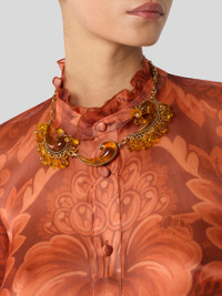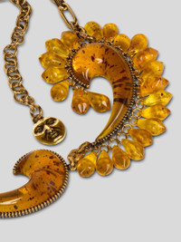 Brass chain-link necklace with resin Paisley framed by small droplets. This accessory, presented at the Autumn-Winter 25 Runway Show, is enhanced by a charm with a raised sun face. • Length: 18.9 inches (48 cm) • Clasp closure • Made in Italy PRODUCT DETAILS • Body: 100% resin • Details: 100% brass