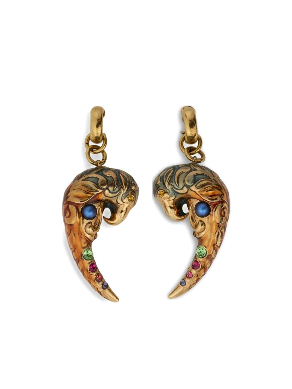 paisley-parrot crystal earrings Highlights - Gold-tone - Paisley parrot - Crystal embellishments - Clip fastening - These earrings come as a pair. Made in Italy SIZE & FIT Measurement HEIGHT 2.75 in(7 cm)