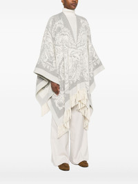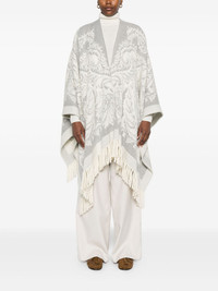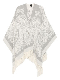 paisley-pattern fringed poncho Highlights - White - Paisley pattern - Fringed edges - Wool Made in Italy Composition Wool 100% SIZE & FIT Model measurements Height 5 ft 11 in(1.8 m) Bust/Chest 31.49 in(80 cm) Hips 36.61 in(93 cm) Waist 24.4 in(62 cm) Measurement BUST 90.55 in(230 cm) LENGTH 35.43 in(90 cm) WAIST 59.05 in(150 cm) Washing instructions Dry Clean Only